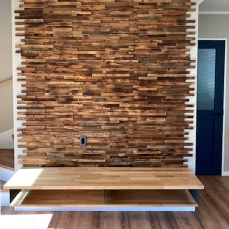 DIY・リノベーションの壁材として最適な天然木のウッドタイル!テクスチャー・色合いと加工性と施工性を兼ね備えたオシャレな壁用のウッドパネル!タイル・レンガとの相性もグッド