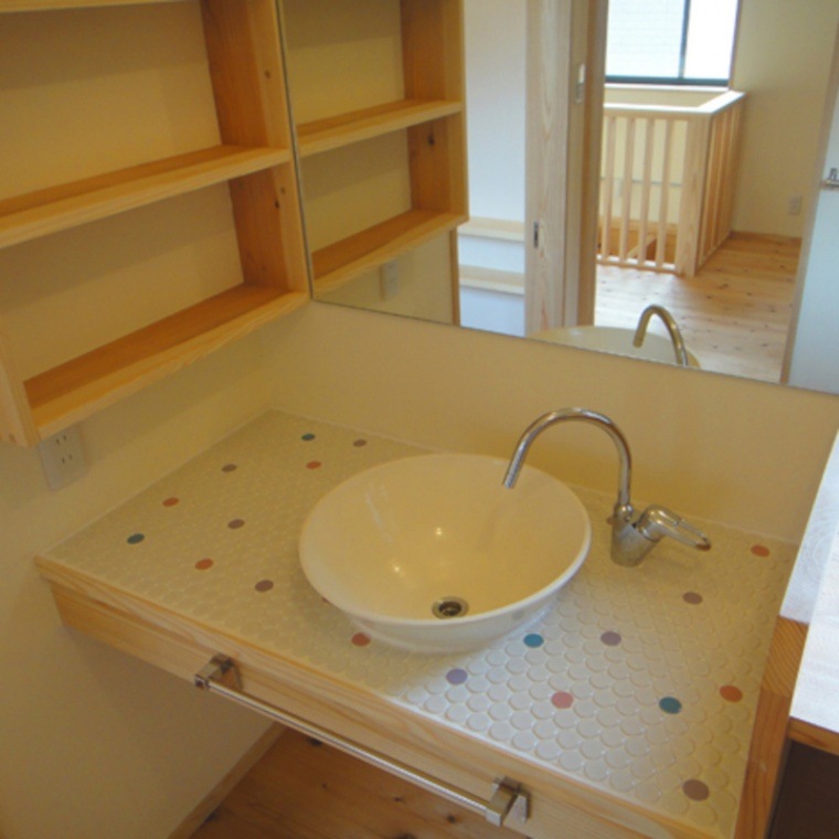 丸いタイルを並べたモザイクシート。当社の所在地である岐阜県多治見市で製造しています。レトロ感たっぷりの愛嬌あるモザイクシートです。