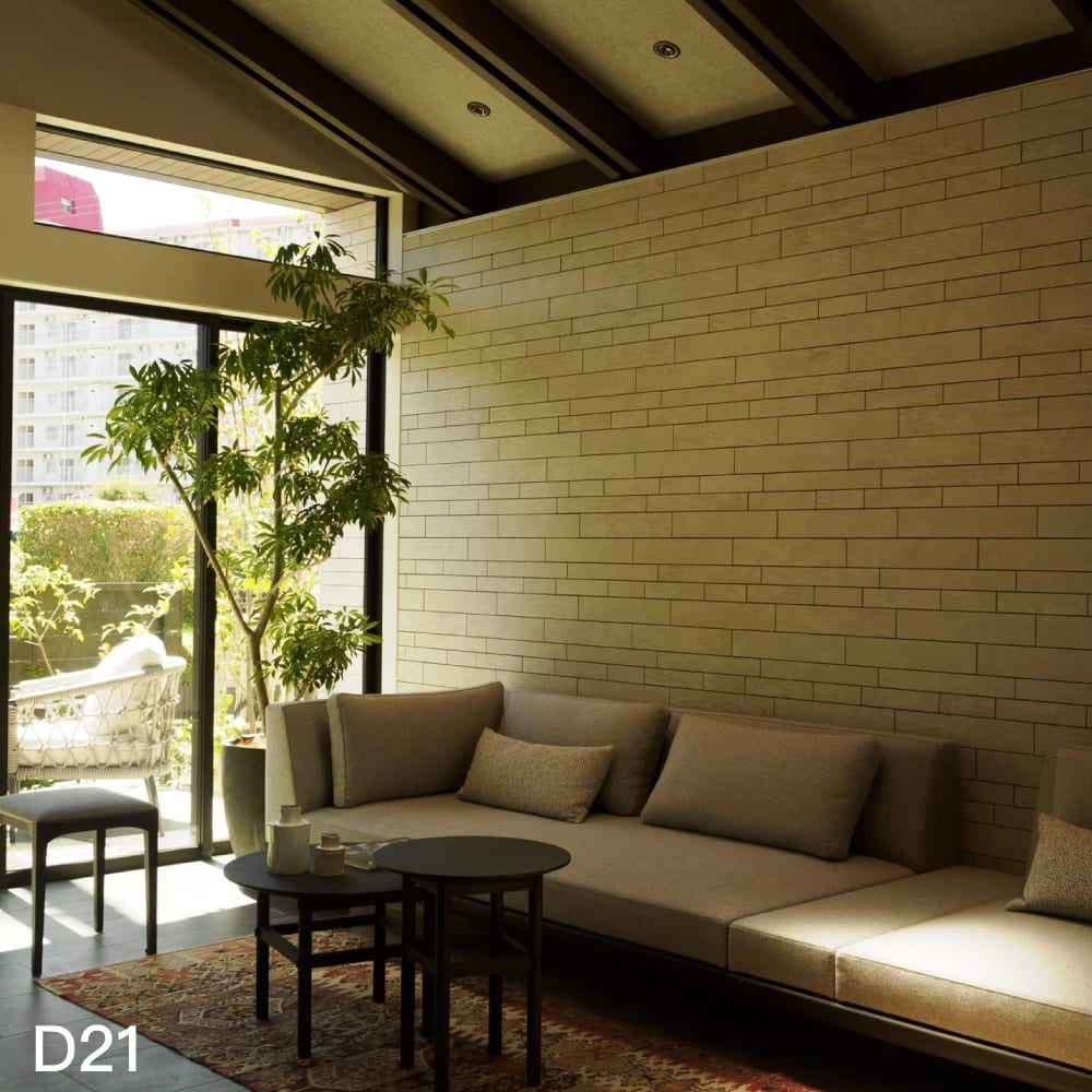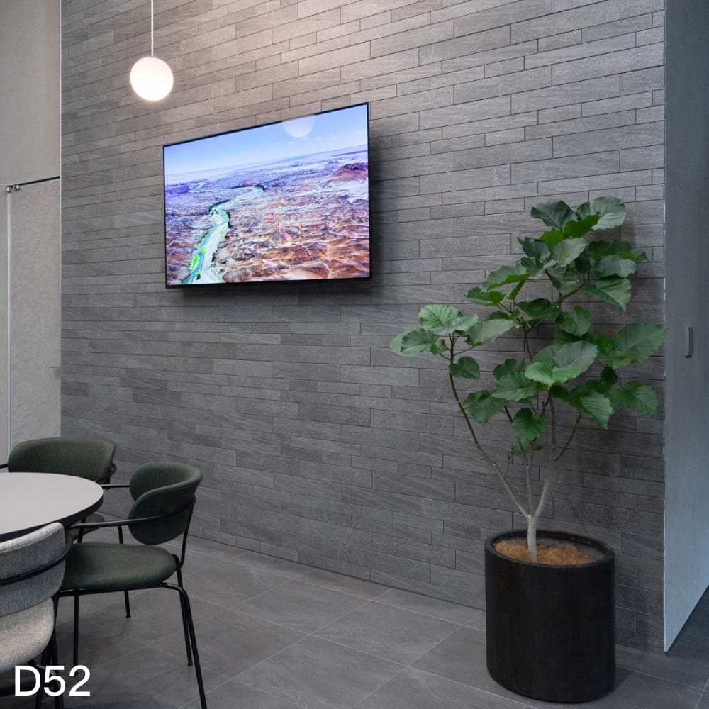 さり気ない石模様をスタイリッシュにボーダー状にデザインした大判サイズの壁タイル。画期的な薄さで超軽量な進化系タイルです。壁面への負荷を減らし、施工性が良く、仕上りの美しさで話題の商品です。