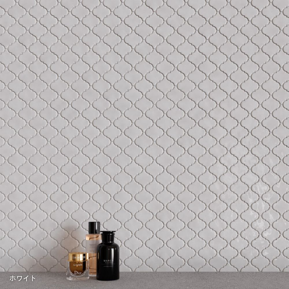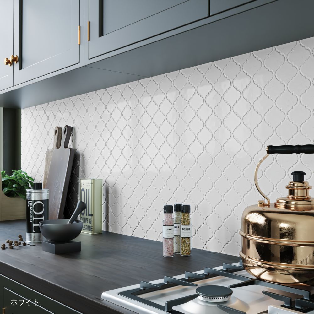 発色が良く、美しい形は壁面をアートのように魅せるタイルです。ランタン、アラベスクなどの呼び名のあるデザインは、古代ギリシャやローマの装飾模様が起源とされ、その後、サーサーン朝ペルシャを経てイスラム世界に伝わったと考えられています。